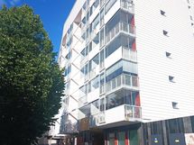 - Koko huoneiston levyinen terassi. Lattiassa puuritilä.