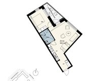 The five floor residential building has 47 apartments ranging from studios to three-bedroom apartments. The apartments have either a French balcony, balcony, yard, or a unique combination of a terrace and yard. The apartments have brown-toned laminate flooring and light surface materials. The kitchen is equipped with a dishwasher, built-in oven, induction stove, and a refrigerator-freezer combination. The bathroom has electric underfloor heating and a space for a washing machine and dryer. The bathroom has white wall tiles and black floor tiles. Shared facilities for residents include a sauna, storage for belongings and strollers, and an outdoor equipment storage.