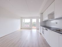 Upea viidennen (5) kerroksen tilava yksiö tarjoaa valoisuutta, toimivuutta ja modernia asumista. Asunnossa on fiksu pohjaratkaisu, mikä maksimoi tilan käytön ilman hukkaneliöitä. Asunnon tyylikäs ja moderni avokeittiö on varusteltu vaaleilla pintamateriaaleilla sekä laadukkailla kodinkoneilla. Asunnossa ranskalainen parveke aamuauringon suuntaan. Kauniisti laatoitetussa kylpyhuoneessa liitäntä pyykinpesukoneelle.