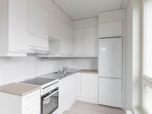 Lattiat ovat helppohoitoista vinyylilankkua. Keittiö on varustettu keraamisella liedellä ja astianpesukoneella. Keittiön vakiovarusteena on jääpakastinkaappi. Kylpyhuoneessa on tyylikäs keraaminen laatoitus ja tilaa pyykinpesukoneelle sekä kuivausrummulle.