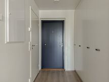 Käytännöllinen, näppärä koti yhdelle kuin kahdellikin asukkaalle. Kodissa on iso vaatehuone ja komeroita säilytykseen. Laadukas pesuhuone on varusteltu korkealla peilikaapilla, hylly- ja allaskaapilla ja seinään kiinnitetyllä wc-istuimella. Keittiössä lisälasku- ja säilytystilaa pyörillä siirrettävän saarekkeen ansiosta. Koko asunnon levyiseltä lasitetulta parvekkeelta ovat rauhalliset näkymät sisäpihalle länteen.