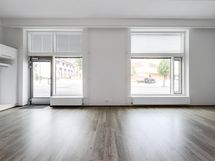 Tämän katutasossa sijaitsevan kodin valttina on avara pohjaratkaisu ja korkea huonekorkus. Isoista ikkunoista valo pääsee hyvin sisälle asuntoon. Keittiössä on reilusti säilytys- ja laskutilaa, astianpesukone ja keraaminen liesi. Tilavassa kylpyhuoneessa on tilavaraus pesukoneelle.
