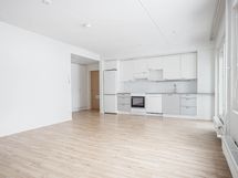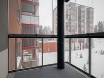 Tilava kolmannen kerroksen kaksio lasitetulla parvekkeella. Erillinen eteinen jakaa tilaa mukavasti. Avara pesuhuone pyykinpesukoneliitännällä. Makuuhuoneessa sijaitseva vaatehuone tuo valtavasti lisää säilytystilaa. Parveke toimii kesäisin kuin ylimääräisenä huoneena. Lasituksensa ansiosta viihdyt parvekkeella säällä kuin säällä.