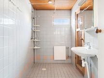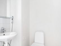 Pesuhuoneessa on liitännät pyykkikoneelle. Arkea helpottaa erillinen pikku-wc.