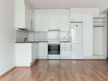 Keittiössä on mukavasti pöytä- ja säilytystilaa. Olohuoneesta kulku lastitetulle parvekkeelle. Makuuhuoneessa kaapistot. Laatoitetussa kylpyhuoneessa pesukoneliitäntä.