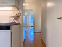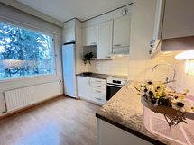 Paljon kaappitilaa, Paljon työskentelytilaa, Laminaattitasot, Astianpesukone, Pesukoneliitos, Induktioliesi, Liesituuletin, Jää-pakastinkaappi - Parveke
