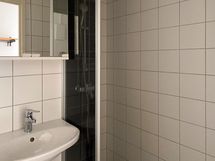 Lattiat ovat tammilaminaattia ja seinät ovat maalipinnalla. Keittiössä on valkoiset kaapistot ja vaalean harmaat työtasot. Kylpyhuoneet on laatoitettu trendikkäästi seinien osalta valkoisella ja lattia tumman harmaalla. Astianpesukoneelle sekä pyykinpesukoneelle löytyy liitännät.