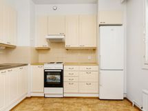 Keittiössä on perinteinen liesi ja jää-pakastinkaappi, astianpesukoneellesikin on tilaa. Lattia on helposti puhtaana pidettävää muovimattoa, joka ei roiskeista säikähdä. Muissa huoneissa on laminaattilattiat, jotka tuovat tilaan kodikasta tunnelmaa. Kylpyhuone on kaakeloitu ja siellä on tila pyykkikoneellesi.