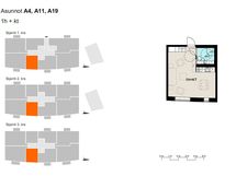 Vuokrattavia huoneistoja on laidasta laitaan, aina 27,5-neliöisistä yksiöistä 71-neliöisiin neljän huoneen koteihin. Kolmioissa, neliöissä sekä osassa kaksioita lisää tilaa tuo myös parveke.