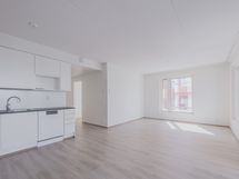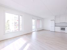 Upea viidennen (5) kerroksen kahden makuuhuoneen kulmahuoneisto. Asunnossa fiksu pohjaratkaisu, eikä hukkaneliöitä ole. Olohuoneen yhteydessä oleva tyylikäs ja moderni avokeittiö on varusteltu vaaleilla pintamateriaaleilla sekä laadukkailla kodinkoneilla. Tämä kulmahuoneisto on todella valoisa, sillä luonnon valoa tulvii sisään kahdesta ilmansuunnasta. Asuinmukavuutta lisää kylpyhuoneen yhteydessä oleva kodinhoitohuone. Lisää valoa ja tilaa tuo länteen avautuva tilava lasitettu parveke, joka kutsuu nauttimaan ilta-auringon säteistä.