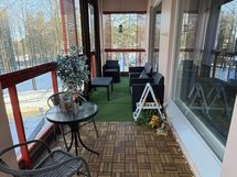 The apartment has two bedrooms, a spacious living room with an open kitchen, sauna and a modern bathroom. The water-circulated underfloor heating brings freedom in decorating, as there are no radiators. The apartment is crowned by a spacious, glazed balcony (20m2) that runs the entire length of the apartment and offers plenty of additional living space, offering great views. The perfect place to enjoy your morning coffee or relax at the end of the day.