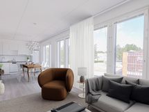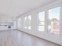 Valoisa viidennen (5) kerroksen kulmahuoneisto tarjoaa tilaa ja toimivuutta. Asunnossa on fiksu pohjaratkaisu, mikä maksimoi tilan käytön ilman hukkaneliöitä. Aamuauringon suuntaan avautuva parveke antaa kauniin maiseman aamukahvihetkiin. Tyylikäs ja moderni avokeittiö on varusteltu vaaleilla pintamateriaaleilla ja laadukkailla kodinkoneilla. Olohuoneen useiden ikkunoiden ansiosta luonnon valoa tulvii runsaasti sisään, tehden asunnosta todella viihtyisän.