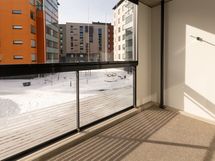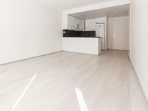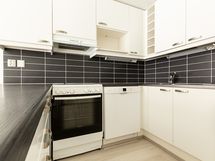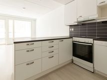 Tähän asuntoon astut sisään eurooppalaisittain keittiö kautta. Pienen kodin keittiössä on runsaasti säilytys- ja työskentelytilaa käytännöllisessä tilanjakajasaarekkeessa. Valtava lasitettu parveke on kuin yksi huone lisää lämpimänä vuodenaikana.