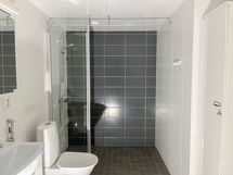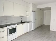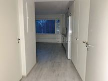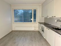 Tässä persoonallisessa Lumo-kodissa on kaksi makuuhuonetta ja olohuone, josta käynti lasitetulle parvekkeelle. Keittiö jää toiseen päähän asuntoa ja tilaan mahtuu suurempikin ruokapöytä. Keittiön kaapistot ovat valkoiset ja työtasona on harmaa laminaattitaso. Erittäin toimiva koti pienelle perheelle! Lattiassa on vaalea harmaansävyinen laminaatti ja seinät ovat maalatut. Kylpyhuone on laatoitettu valkoisen ja harmaan sävyisillä laatoilla ja siellä on tila ja liitännät omalle pyykinpesukoneellesi.