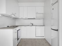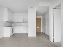 Tarjolla 2.kerroksen tilava kaksio. Asunnossa iso moderni keittiö olohuoneen yhteydessä, josta kulku lasitetulle parvekkeelle.