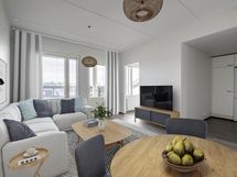 Tässä viihtyisässä ja tyylikkäässä Leona-kodissa yhdistyvät avara valoisuus, moderni keittiö ja oma parveke, joka tuo luonnonvaloa ja raikkautta arkeen. Asunnon vaaleat ja ajattomat pintamateriaalit tekevät tilasta raikkaan ja helposti sisustettavan. Keittiö on varusteltu tyylikkäillä ja moderneilla kodinkoneilla, jotka tekevät arjesta sujuvaa. Asunto on myös varustettu mukavuuslattialämmityksellä kylpyhuoneessa, joka lisää asumismukavuutta. Ilmoituksen kuvat ovat vastaavasta asunnosta samassa taloyhtiössä.