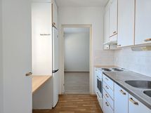 Tämän Lumo-vuokrakodin toimiva pohjaratkaisu mahdollistaa hyvin kimppa-asumisen. Läpikuljettavasta keittiöstä pääsee sekä makuuhuoneeseen että olohuoneeseen. Olohuoneesta on kulku lasitetulle parvekkeelle. Eteisestä löytyy pieni vaatehuone ja kylpyhuone.