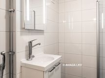 Suihku, Suihkukaappi, Pesukonevalmius, Laattaseinä, Laattalattia, Peilikaappi, Allaskaappi, Lattialämmitys