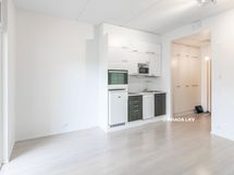 Valoisa yksiö, jossa todella iso ikkuna ja tilava parveke, joka mainio lisähuone lämpimällä säällä. Asunnossa on kunnon huonekorkeus, joten parvekkeineen se tuntuu neliöitään suuremmalta.