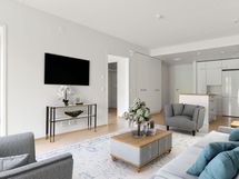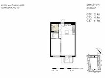 Olet sitten tilaa arvostava sinkku, yhteistä pesää rakentava pariskunta tai omasta turvasatamasta haaveileva pieni perhe, tämä saattaisi olla etsimäsi ratkaisu. Asunto on helposti sisustettavissa oman maun ja tyylin mukaan. Pohjaratkaisultaan selkeä koti, jonne saat kaiken tarvittavan. Keittiön ja olohuoneen jakaa tyylikäs saareke. Lattiat ovat tammensävyistä laminaattia ja seinät maalattu. Keittiössä on vaaleat kaapistot, astianpesukone, keraaminen liesi ja jääkaappipakastin. Kylpyhuone on tyylikkäästi laatoitettu ja pyykinpesukoneelle löytyy liitännät. Tässä kodissa on myös kätevä vaatehuone. Lasittamaton parveke on sisäpihan suuntaan.