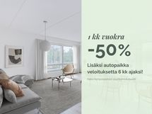 Kampanja! Asu ensimmäinen kuukausi puoleen hintaan. Lisäksi autopaikka veloituksetta 6 kk ajaksi! Kampanjasopimuksen minimiasumisaika on 12 kuukautta.