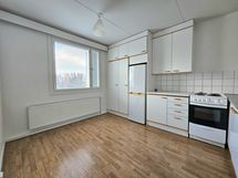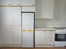 Paljon kaappitilaa, Astianpesukone, Paljon työskentelytilaa, Tilaa isolle ruokapöydälle, Laminaattitasot, Jää-pakastinkaappi, Sähköliesi