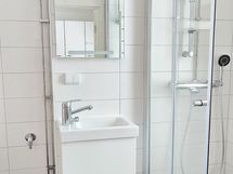• Kylpyhuone + oma sauna: ikkunallinen kokonaisuus, lattialämmitys ja hyvin tilaa pyykkikone/kuivausrumpu -yhdistelmälle.