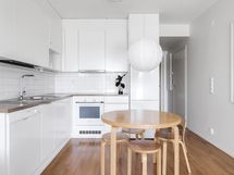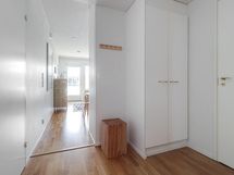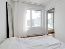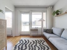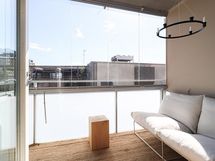 Tilava kolmannen kerroksen asunto avautuu itään. Olohuone ja tilava keittiö muodostavat toimivan oleskelutilan, josta on kulku tilavalle lasitetulle parvekkeelle. Tässä ihastuttavassa asunnossa on hyvän kokoinen makuuhuone, suuri kylpyhuone ja oma sauna. Asunnossa on runsaasti säilytystilaa: keittiössä ja makuuhuoneessa paljon kaappitilaa ja eteisen yhteydessä kaapin lisäksi vaatehuone.