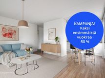 KAMPANJATARJOUS: Kahden ensimmäisen kuun vuokra -50%. Tältä ajalta maksetaan vesimaksu ja mahdolliset käyttökorvaukset normaalisti. Kampanja voimassa toistaiseksi ja koskee vain uusia asukkaita. Sopimuksen minimi asumisaika on 7kk.