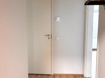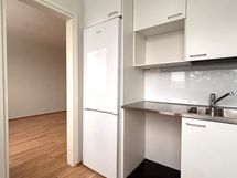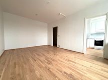 Valoisa olohuone ja erillinen keittiökomero muodostavat toimivan kokonaisuuden. Makuuhuoneeseen mahtuu hyvin parisänky, ja kylpyhuone on kompakti mutta käytännöllinen, varustettuna pesukoneliitännällä ja lasiovella.