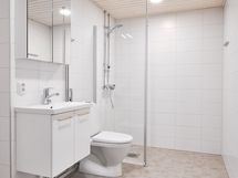 Laadukkaat pintamateriaalit ja tyylikkäät kodinkoneet lisäävät asumismukavuutta. Keittiön varustukseen kuuluvat integroitu liesi, uuni ja astianpesukone. Kylpyhuoneessa on tyylikäs allaskaappi ja peilikaappi sekä liitännät pyykinpesukoneelle. Vaatehuone tarjoaa mukavasti säilytystilaa arjen tarpeisiin.