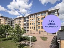 Nelikerroksinen talo monipuolisten palveluiden ja liikenneyhteyksien äärellä Veromiehenkylässä.