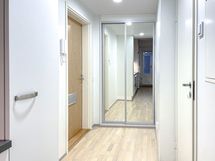 Asunnossa on paljon kaappitilaa, vaaleat pinnat ja lattia on lautaparkettia. Asunnossa on ranskalainen parveke, sekä ikkunoissa sälekaihtimet. Keittiön varustuksena on keraaminen liesitaso, erillinen kalusteuuni, ilmanvaihtoon liitetty liesikupu, astianpesukone ja jääkaappi-pakastin yhdistelmä. Lisäksi reilusti kaappitilaa ja laskutasoa. Kaikki tarpeellinen löytyy ja saat hyvin nautittua kokkaamisesta tässä keittonurkkauksessa! Kylpyhuone on kokonaan kaakeloitu ja siellä on tila ja liitännät pesukoneelle, sekä kondensoivalle kuivausrummulle, suihku, peilikaappi ja allaskaappi. Lisäksi kylpyhuoneessa on asumismukavuutta lisäämässä lattialämmitys.