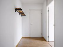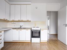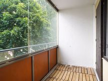 Kodissa on tilava pohjaratkaisu ja se soveltuu hyvin myös pienelle perheelle. Keittiöön mahtuu hyvin suurempikin ruokapöytä. Tilavan olohuoneen jatkeena on lasitettu parveke, josta pääset nauttimaan pitkälle syksyyn. Makuuhuoneessa on koko seinän leveydeltä kaappitilaa.