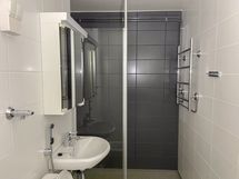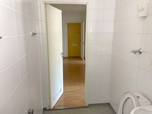 Lattiassa on kaunis tammilaminaatti ja seinät ovat maalatut. Keittiön kaapistot ovat alkuperäistä lastulevyä. Työskentelytasot ja välitila on sävyltään valkoiset. Astianpesukoneelle löytyy liitännät, mutta keittiössä ei ole liesituuletinta. Tyylikkäässä kylpyhuoneessa on harmaa massalattia ja valkoiset sekä harmaat laatat seinissä. Pyykinpesukoneelle on mahdollisuus
