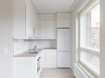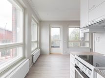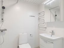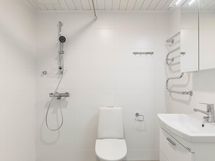 Lattiat ovat helppohoitoista vinyylilankkua. Keittiö on varustettu keraamisella liedellä ja astianpesukoneella. Keittiön vakiovarusteena on jääpakastinkaappi. Kylpyhuoneessa on tyylikäs keraaminen laatoitus ja tilaa pyykinpesukoneelle sekä kuivausrummulle.