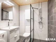- Pesutilojen varusteet: WC-istuin, suihku, suihkuseinä, pesukone, lattialämmitys, peilikaappi, allaskaappi, pesuallas ja bidee-suihku.