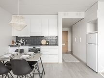 - VARUSTUS: Jääkaappipakastin, astianpesukone, uuni, keraaminen liesi, kaapistot.