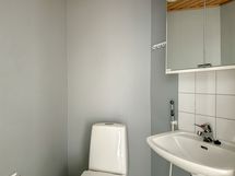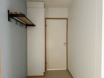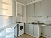 Asunnossa vaalea muovimattolattia ja valkoisella maalatut seinät. Erillinen kylpyhuone on harmaalla muovimatolla ja valkoisilla laattaseinillä. Pesukoneelle on liitännät. Erillisessä wc:ssä on harmaa muovimatto ja maalatut valkoiset seinät. Keittiössä on harmaat kaapinovet metallivetimillä ja liitännät 60cm leveälle astianpesukoneelle. Toisen makuuhuoneen yhteydessä on iso vaatehuone. Lasittamaton parveke avautuu pihapiirin suuntaan.