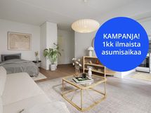 KAMPANJA: Ensimmäisen kokonaisen kuukauden vuokra veloituksetta. 1. mahdollinen irtisanomisaika on 11kk kuluttua vuokrasopimuksen aloituksesta. Etu voimassa vain uusille asukkaille.