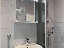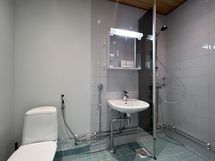 Pesutilojen kuvaus: Varustus: pesukoneliitäntä, suihku, suihkuseinä, peilikaappi, bidee-suihku.
