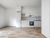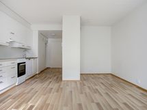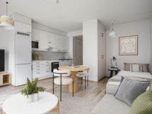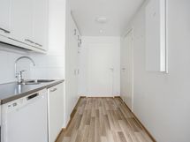 Tässä kodissa on tehokas pohjaratkaisu ja neutraalit vaaleat pinnat, jotka mahdollistavat asunnon helpon sisustamisen mieleiseksi. Keittiö on käytännöllinen ja sieltä löytyy mm. astianpesukone arkea helpottamaan. Kylpyhuoneesta löytyy pesukoneliitäntä.