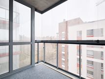Olohuoneesta on pääsy ihanalle lasitetulle parvekkeelle, joka toimii niin lisätilana kuin myös arjen rentoutumispaikkana.