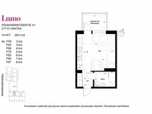 Tämä ihastuttava, pieni Lumo-koti on täydellinen yhdelle hengelle. Pieneen kotiin on saatu mahtumaan kaikki tarpeellinen, ottamatta mitään ylimääräistä. Kodin pohja on selkeä ja toimiva, jossa huonekalut löytävät helposti oman paikkansa! Keittiö on avoin olohuoneeseen, mikä tuo kivasti avaruutta ja tilan tuntua.