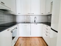 Varusteet: jääkaappipakastin, astianpesukone. Liesi: induktioliesi