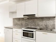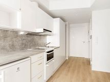 Kaikki tarpeellinen kauniissa paketissa Kompakti vuokra-asunto Tikkurilassa Soman pikkukodin pohjaratkaisu on selkeä ja avoin. Keittiö ja olohuone yhdistyvät viihtyisäksi oleskelualueeksi, joka on helppo kalustaa kodikkaasti. Tilan lattia on vaaleaa laminaattia. Seinät ovat valkoiset. Keittiökaapistot ja kaikki komerot ovat kotimaista Kankarin kalusteen tuotantoa. Keittiössä kaapistojen ovet ovat raikkaan valkoiset ja vetimet ovat harjattua messinkiä. Ylä- ja alakaappien välisessä tilassa on harmaa laminaatti ja työtaso on samaa sävyä. Varusteena on on jääkaappi ja liesi. Kokonaan laatoitetun kylpyhuoneen seinät ovat valkoiset ja lattiat vaalean harmaat. Kylpyhuoneen kalusteet ovat valkoisia. Pesukoneelle ja kuivausrummulle on varaus. Kodin valoisuutta lisää etelään suuntautuva ranskalainen parveke.
