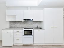 Kaikki tarpeellinen kauniissa paketissa Kompakti vuokra-asunto Tikkurilassa Soman pikkukodin pohjaratkaisu on selkeä ja avoin. Keittiö ja olohuone yhdistyvät viihtyisäksi oleskelualueeksi, joka on helppo kalustaa kodikkaasti. Tilan lattia on vaaleaa laminaattia. Seinät ovat valkoiset. Keittiökaapistot ja kaikki komerot ovat kotimaista Kankarin kalusteen tuotantoa. Keittiössä kaapistojen ovet ovat raikkaan valkoiset ja vetimet ovat harjattua messinkiä. Ylä- ja alakaappien välisessä tilassa on harmaa laminaatti ja työtaso on samaa sävyä. Varusteena on on jääkaappi ja liesi. Kokonaan laatoitetun kylpyhuoneen seinät ovat valkoiset ja lattiat vaalean harmaat. Kylpyhuoneen kalusteet ovat valkoisia. Pesukoneelle ja kuivausrummulle on varaus. Kodin valoisuutta lisää etelään suuntautuva ranskalainen parveke.