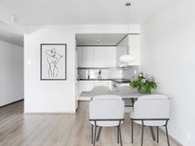 Siistikuntoinen kaksio vapautumassa talon 11. kerroksesta. Asunnon keittiö avautuu oleskelutilaan, johon mahtuu pöytäryhmä sekä sohva. Asuinmukavuutta lisää asunnon lasitettu parveke.