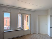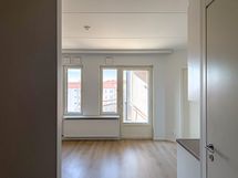 Asunnossa on muovimatto ja maalatut seinät. Keittiössä on selkeä ja toimiva layout, joka avautuu olohuoneeseen ja luo yhtenäisen oleskelutilan. Sekä astianpesukoneelle että pyykinpesukoneelle on liitännät, mikä tuo helppoutta arkeen. Eteisessä on kaappitilaa ja suuret ikkunat tuovat asuntoon valoa.