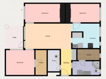 Asunnossa on kolme erillistä makuuhuonetta, tilava olohuone, keittiö sekä kaksi wcä, joista toisessa on suihku, sauna ja pesukoneliitäntä. Pohjaratkaisu sopii erinomaisesti perheelle tai rauhallista asumista arvostaville.